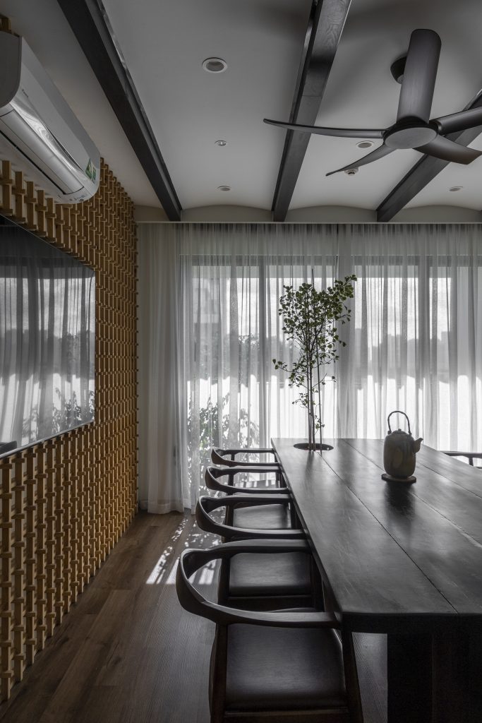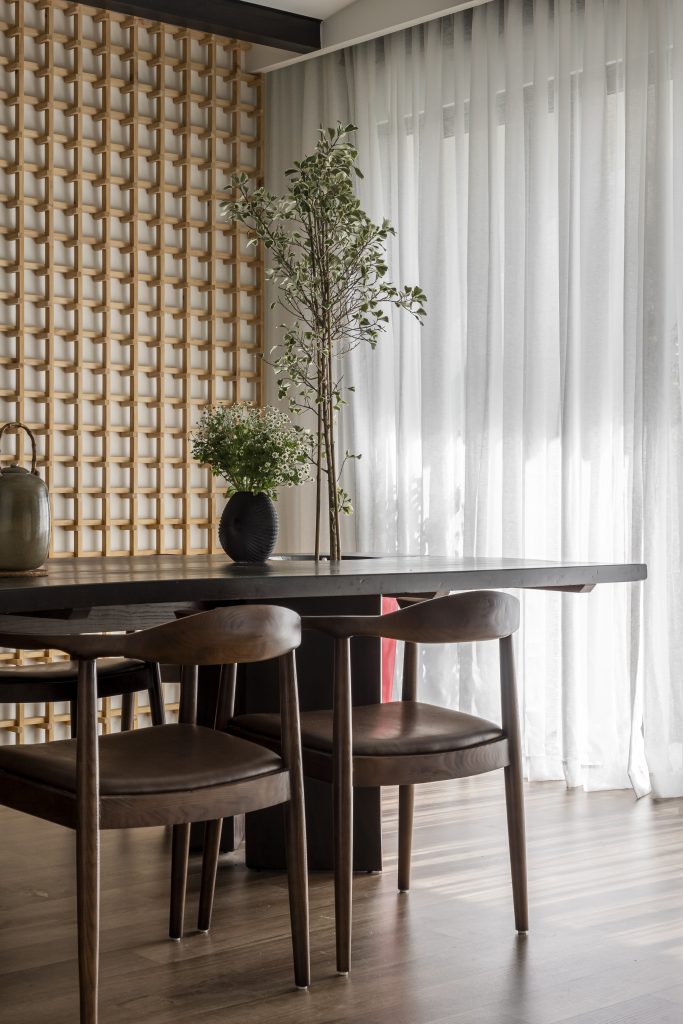 This thoughtful use of material aligns seamlessly with the Wabi-Sabi spirit, where nature is celebrated not only for its beauty but also for its authenticity and impermanence. Hinoki’s tactile texture and warm appearance add depth to the spatial composition while maintaining the overall minimal character of the interior.