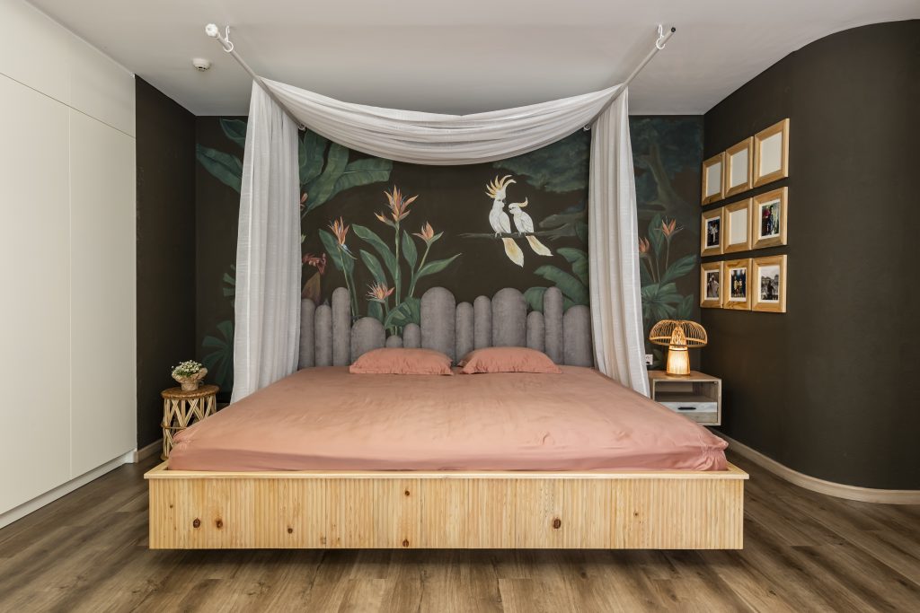 A distinctive design feature of the Diamond Island Apartment – Bahamas inspired by the art of Wabi-Sabi is the use of Hinoki cypress wood—a high-quality Japanese timber known for its soft color, fine grain, and therapeutic aroma. In selected wall cladding and furniture accents, Hinoki wood contributes to the apartment’s calm atmosphere. Its natural fragrance not only brings a sensory layer of relaxation but also possesses insect-repelling and antibacterial properties, making it both aesthetic and functional—especially suitable for serene, wellness-oriented living environments.