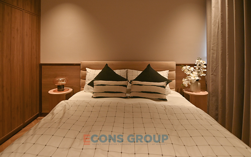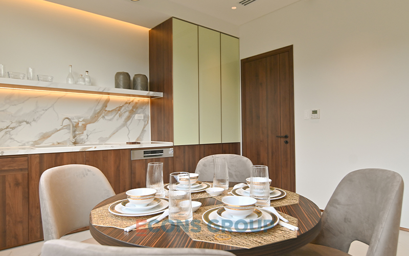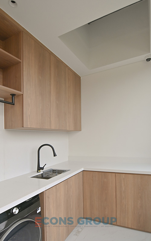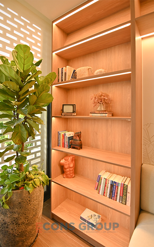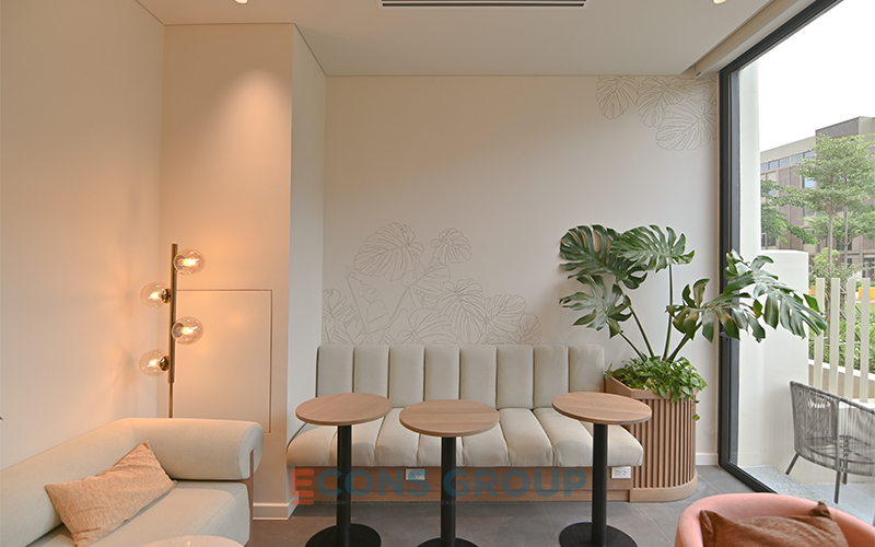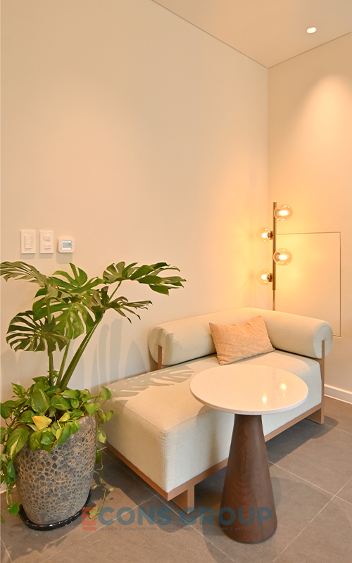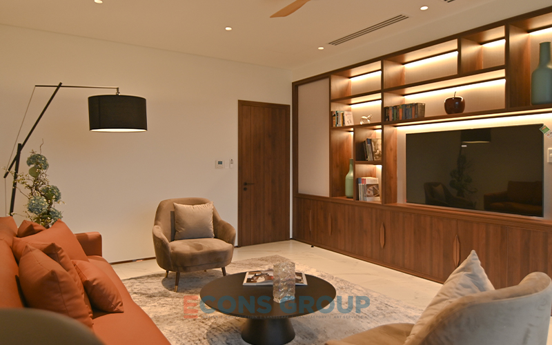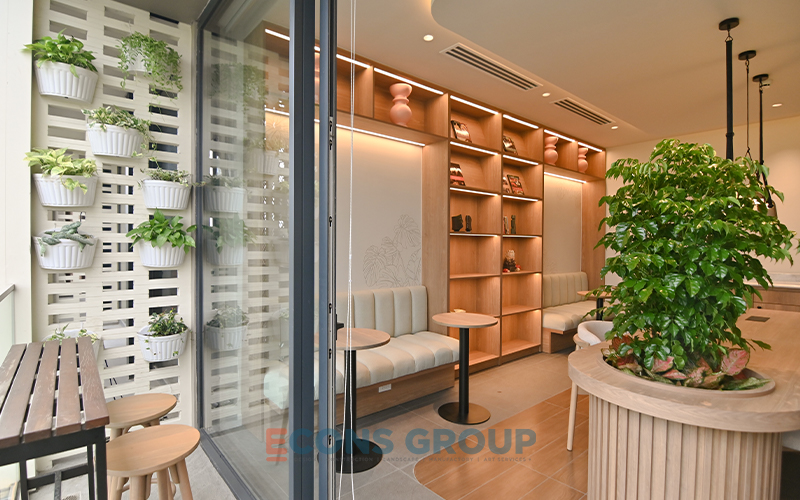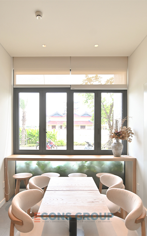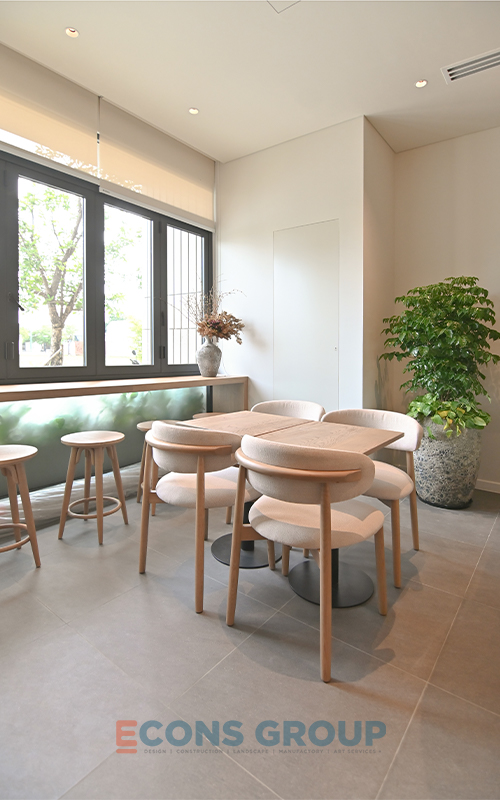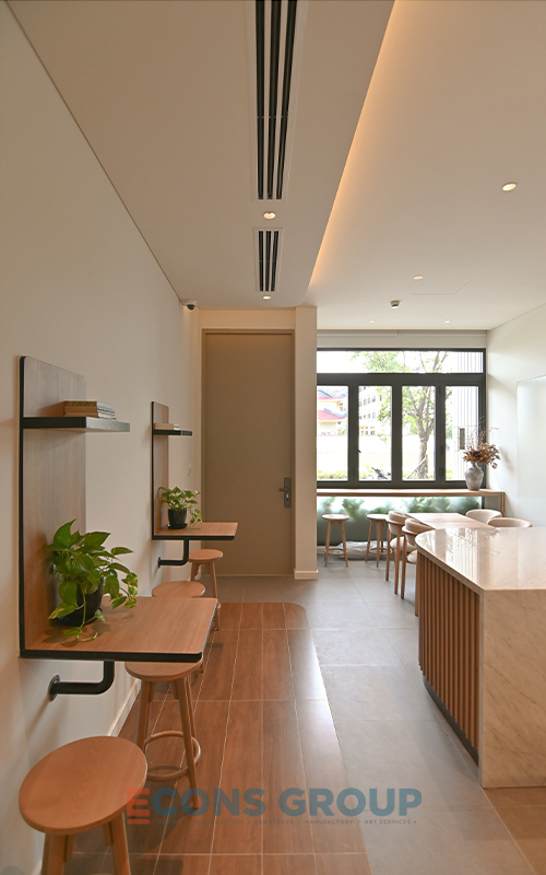 Located in the heart of Global City – a modern, masterplanned urban area – this shophouse was designed by Prime Homes to meet two distinct needs: a café business and family living. The interior reflects a warm, contemporary spirit using natural materials, soft lighting, and a cohesive palette of wood tones, beige, and subtle pastel accents.