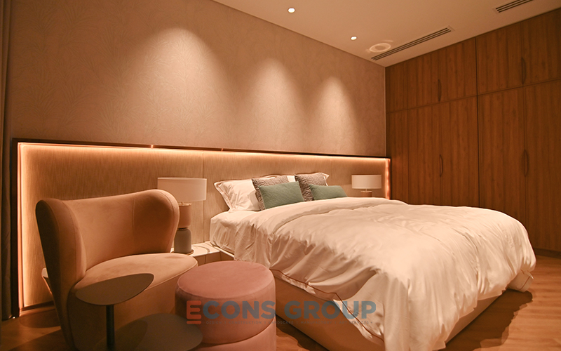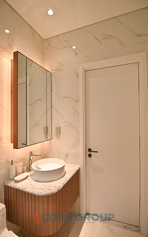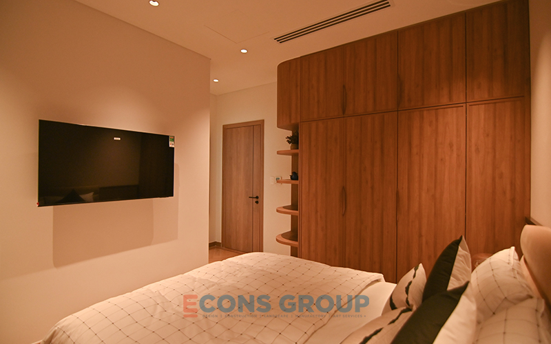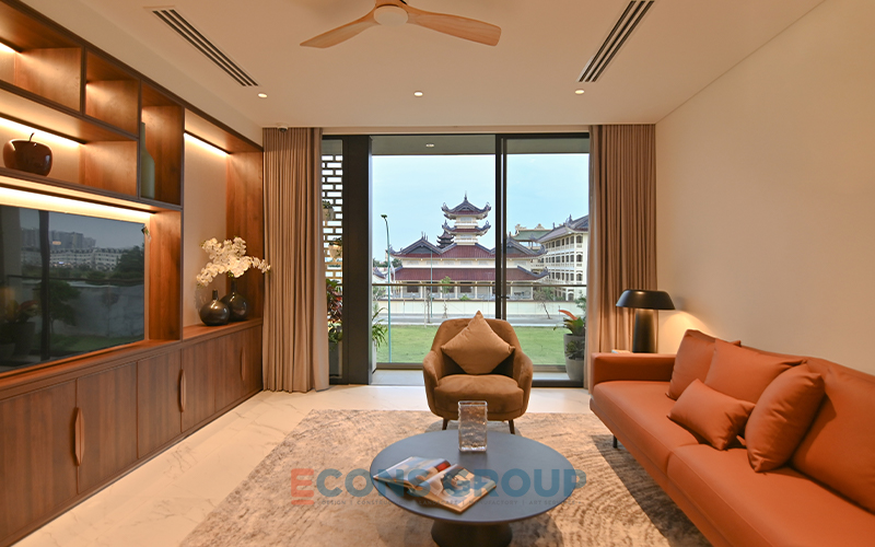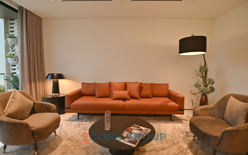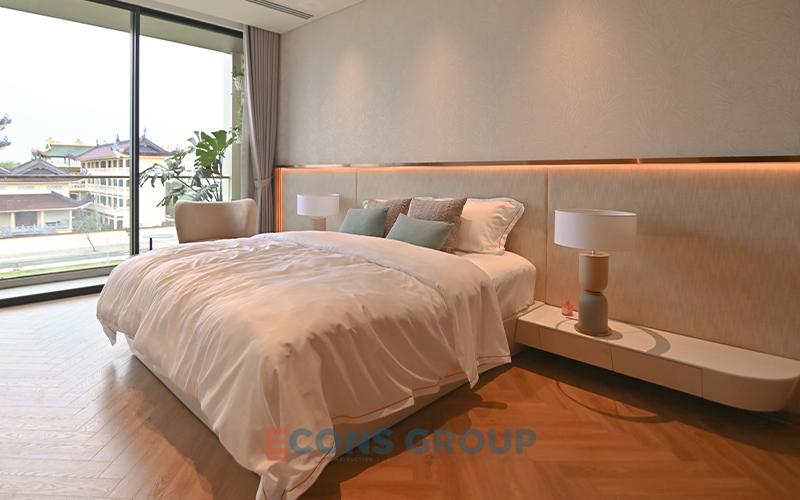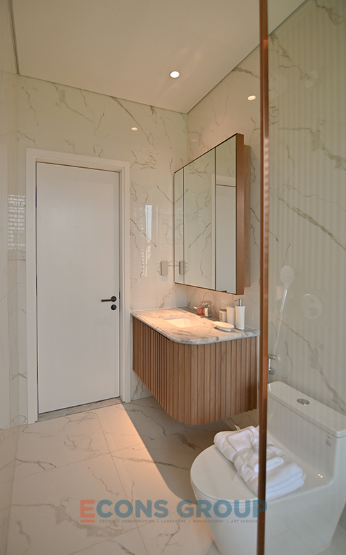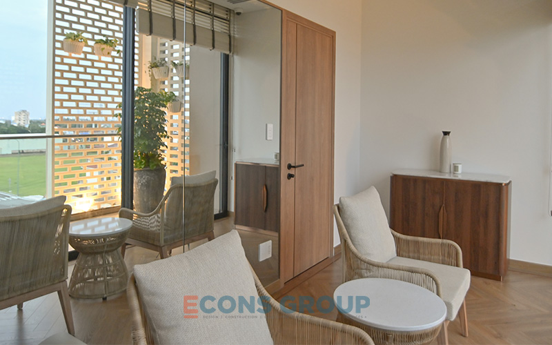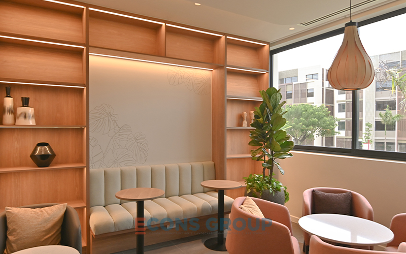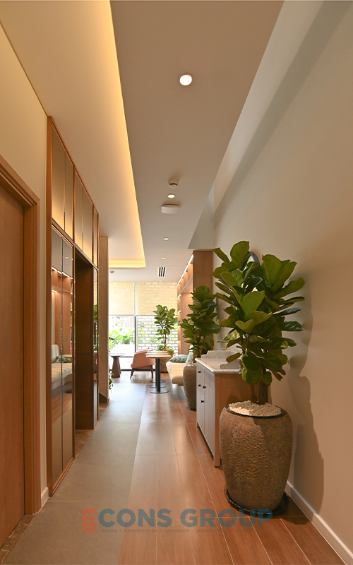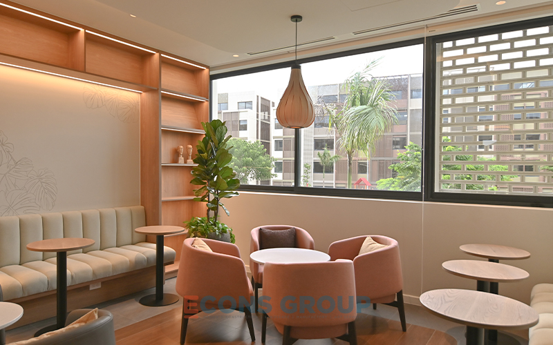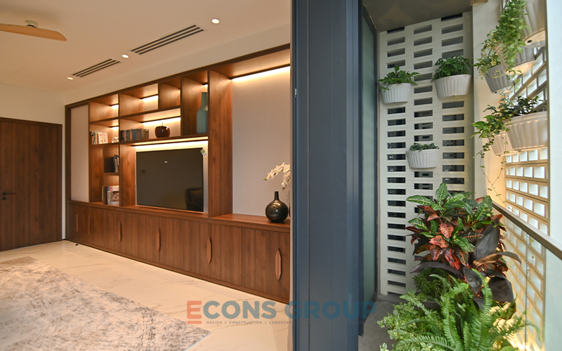 Located in the heart of Global City – a modern, masterplanned urban area – this shophouse was designed by Prime Homes to meet two distinct needs: a café business and family living. The interior reflects a warm, contemporary spirit using natural materials, soft lighting, and a cohesive palette of wood tones, beige, and subtle pastel accents.