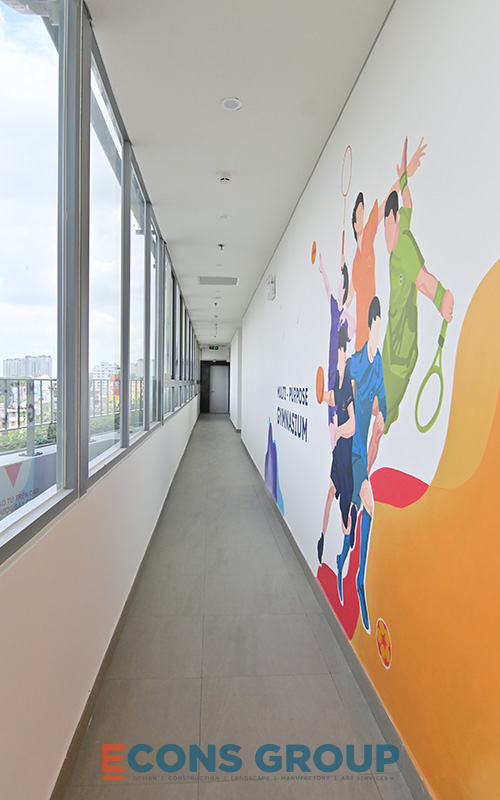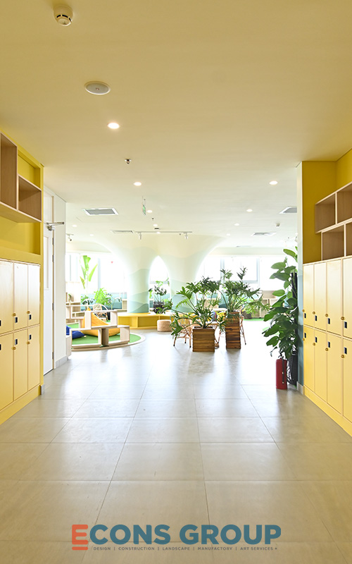 Victoria Riverside International School in District 8 combines thoughtful interior design with functional and aesthetic elements to create an ideal learning environment. The use of soft colors, open spaces, and abundant natural light enhances students’ ability to focus and engage in creative thinking. The inclusion of plants, artwork, and playful design elements in various spaces further enriches the atmosphere, making it a place that encourages both academic excellence and personal growth.