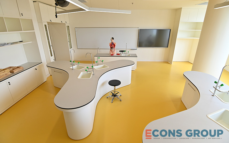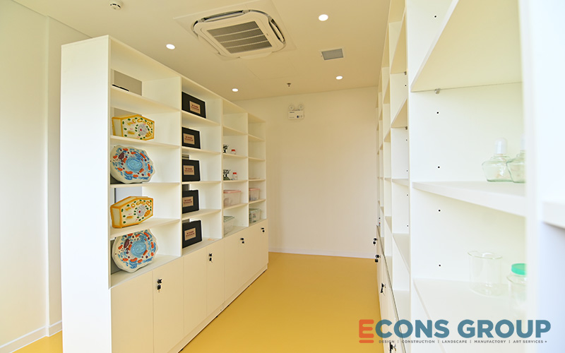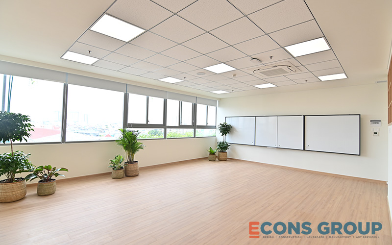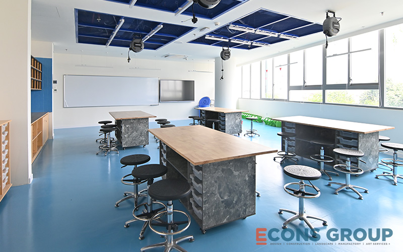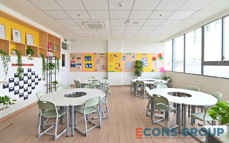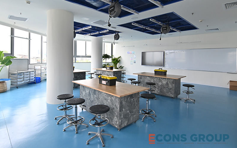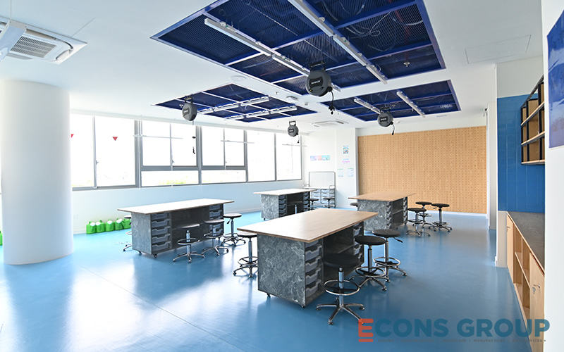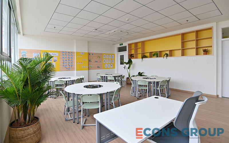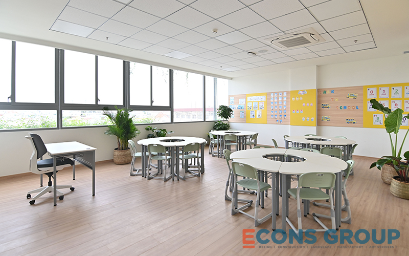 One of the key features of the interior design at Victoria Riverside International School is the use of calming, neutral tones in the learning spaces. White is a predominant color in the classrooms, providing a bright, airy feeling that makes the space feel more expansive. This not only enhances the sense of openness but also helps foster focus and creativity among students.