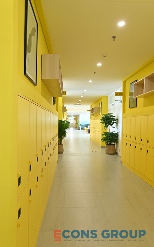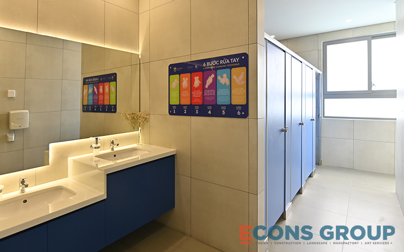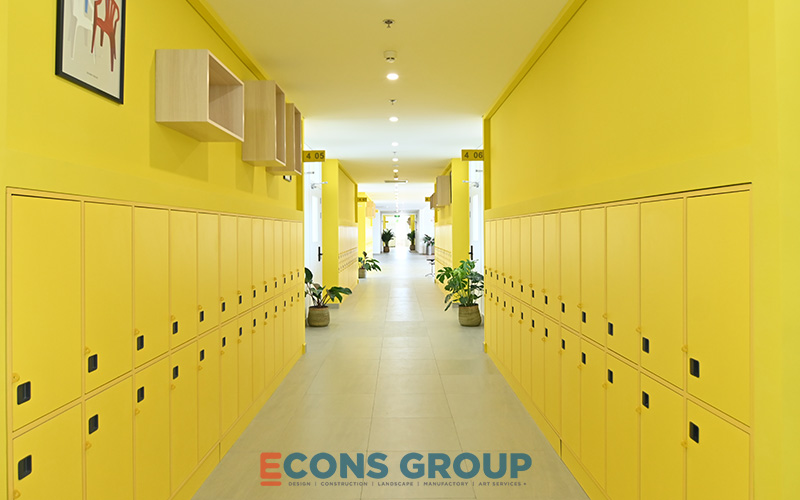 Victoria Riverside International School doesn’t just focus on functionality – the aesthetic appeal of the spaces is just as important. The hallways, lounges, and library are designed with soft pastel colors such as light green, soft yellow, and gentle gray. These colors help create a tranquil atmosphere that enhances students’ well-being and helps them feel relaxed during breaks.