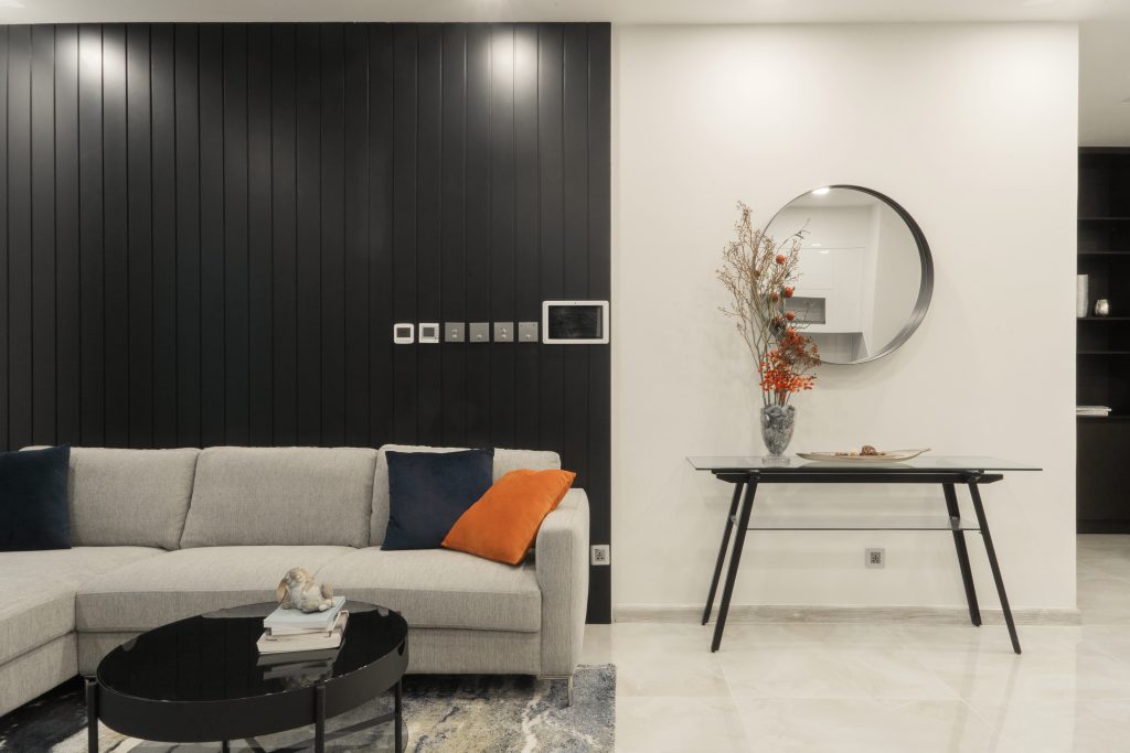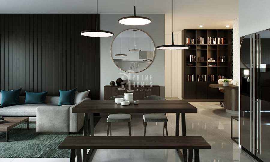 Lighting is not just functional—it’s an emotional layer. Prime Homes uses a mix of cove lighting, warm LED strips, and pendant lights to guide moods across different areas. Natural light floods the space, complemented by artificial lighting designed to shift ambiance from active brightness to soft relaxation.