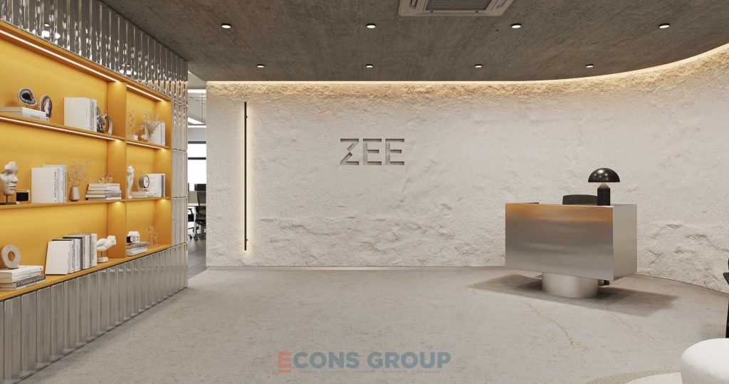 Throughout the space, brand integration was a top priority. The ZEE logo takes center stage behind the reception desk, subtly lit to ensure visibility without overpowering the design. Motivational slogans are embedded into wall treatments along transitional zones, offering daily inspiration to the team. Even the curving silhouettes found in furniture and ceiling lines reflect the dynamic and playful identity of the ZEE brand.